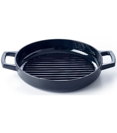 Grillette en fonte durable avec des stries particulièrement profondes pour des aliments parfaitement dorés avec de belles lignes de saisie. Idéale pour la cuisson du steak, du lard, du poulet, des paninis ou même du pain naan. La fonte émaillée est directement prête à l'emploi. Elle est parfaite pour dorer, mijoter, caraméliser et idéale pour cuire au four. La finition épaisse en émail résiste aux rayures et facilite grandement le nettoyage et l'entretien de cette grillette. Le fond permet d'éviter les rayures sur votre plaque de cuisson et votre plan de travail. Tous feux, y compris induction. Également adapté au four ou au barbecue. Type de produit : Poêle. Diamètre : 28 cm. Forme : Rond. Taille du disque d'induction : 240 mm. Volume : 3 l. Matériau : Fonte émaillée. Très résistant : Oui. Facile à nettoyer : Oui. Compatible : Four. Induction : Oui. Lave-vaisselle : Non. Poignée amovible : Non. Couleur : Noir. Hauteur : 5.4 cm. Largeur: 28.7 cm. Poids: 3.425 kg. ...