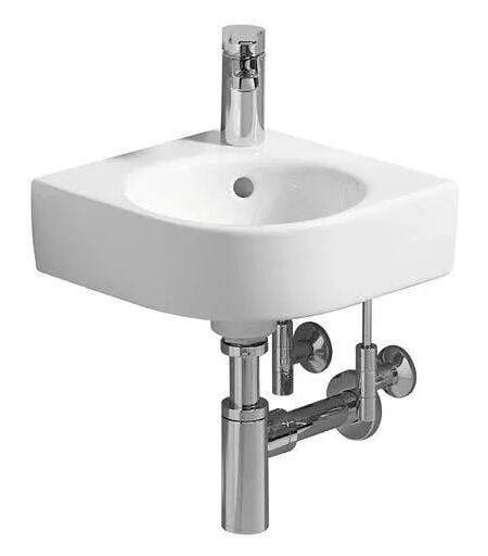 Lave-mains compact d'angle de 32, PRIMA STYLE.Vendu nu, lave-mains seul, sans robinetterie, ni évacuation.CouleurBlancLargeur395 mmHauteur155 mmFixationPar boulonsLongueur455 mmType de poseMuralPose robinetterie1 trou percé central ...