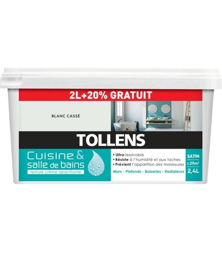 Tollens - Peinture couleurs - Cuisine et Salle de Bains - Satin - Blanc Cassé - 2L+20%
