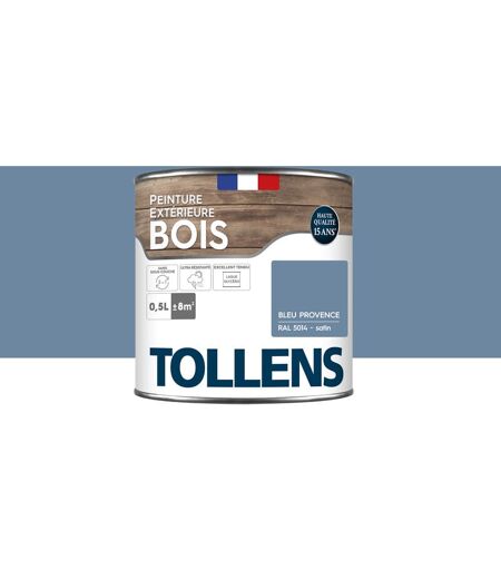Tollens - Peinture bois extérieur 2 en 1 - Ultra Résistante et économique Satin - Bleu Provence - 0,5L=8m2