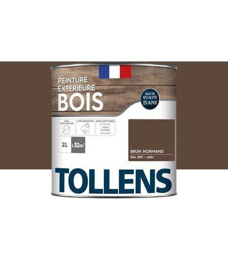 Tollens - Peinture bois extérieur 2 en 1 - Ultra Résistante et économique Satin - Brun Normand - 2L=32m2