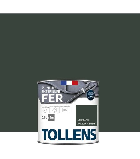 Tollens - Peinture fer extérieure 2 en 1 - Ultra Résistante, séchage rapide et antirouille Brillant - Vert Sapin - 0,5L = 8m2
