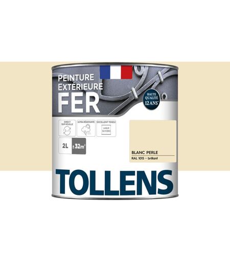 Tollens - Peinture fer extérieure 2 en 1 - Ultra Résistante, séchage rapide et antirouille Brillant - Blanc Perle - 2L = 32m2
