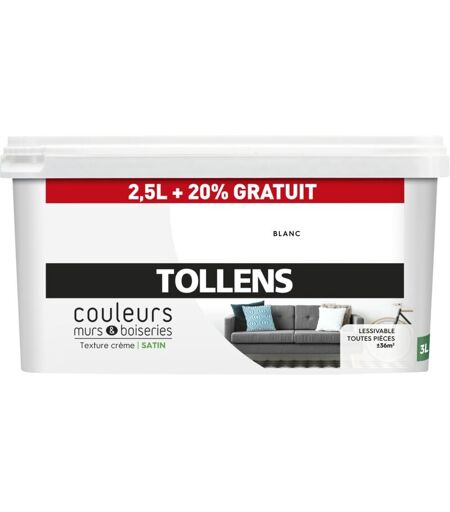Tollens - Peinture Couleurs - Ultra résistante Satin - Blanc - 2,5L+20%