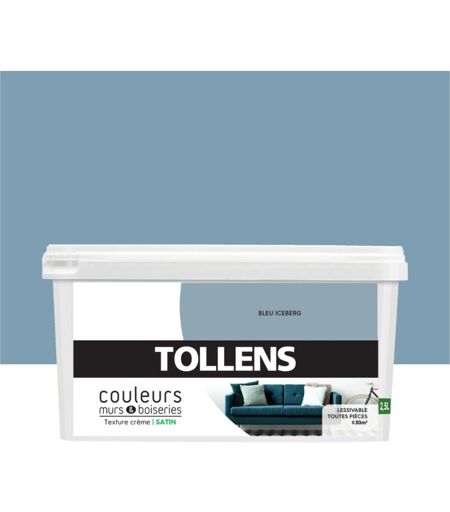 Tollens - Peinture Couleurs pour Murs et Boiseries Toutes pièces - Ultra résistante - Satin - Bleu Iceberg - 2,5L = 30m2