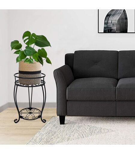 KALANKA-CASIMR Support à 2 étages en métal pour pots de fleurs d'intérieur et d'extérieur - 48,8 cm de haut - En fer antirouille - Pour jardin, terrasse, salon, coin balcon, noir