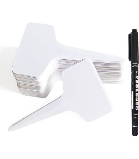 Kalanka-100 Pièces Étiquettes De Plantes En Forme De T Avec Marqueur Étanche, Etiquette Jardin Exterieur Pour Semis, Potager, Plante(6x10 Cm)