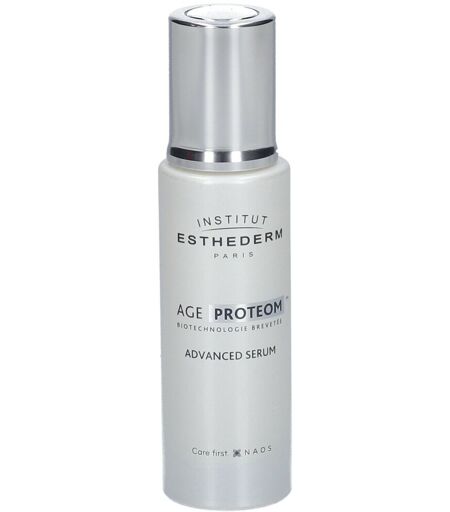 Institut Esthederm Age Proteom™ Advanced SerumEt si votre peau vieillisait deux fois moins vite ? Age Proteom™, le sérum de longévité cellulaire. La peau est constituée majoritairement de protéines – ou protéome- qui garantissent sa fermeté, sa tonicité, son éclat, son uniforité et sa densité. Un protéome de bonne qualité permet de lutter efficacement contre les agressions externes et les signes de l’âge.DÉCOUVERTE MAJEURE : pour la 1er fois, il est démontré que la jeunesse de la peau est inscrite dans son protéome. La peau est constituée majoritairement de protéines - ou protéome - qui garantissent sa fermeté, sa tonicité, son éclat, son uniformité et sa densité. Un protéome de bonne qualité permet de lutter efficacement contre les agressions externes et les signes de l’âge.BIOTECHNOLOGIE BREVETÉE AGE PROTEOM™ :Extraite d’un micro-organisme capable de régénération en conditions extrêmes, elle protège et renforce le protéome, durablement.ADVANCED SERUM, UNE EFFICACITÉ CLINIQUEMENT PROUVÉE :Dès le 1er mois*, la peau est visiblement transformée (éclat, rides, fermeté). Mieux protégée, la peau récupère plus vite et parait régénérée.Après 1 mois*, la correction des signes de l’âge s’intensifie et se prolonge durablement.À 6 mois*, les résultats obtenus sont 4 fois supérieurs aux résultats à 2 mois.RÉDUCTION DURABLE DES SIGNES DE L’ÂGE APRES 6 MOIS :Rides : -26 %*Perte d'éclat : -47 %*Teint non uniforme : -32 %*Relâchement : -28 %*Perte de densité : -24 %** 3 études : mesures biométriques, 21 sujets, 28 jours / étude de satisfaction, 32 sujets, 28 jours / scorages cliniques, 55 sujets, 6 mois.[youtube:2iI1WNgG5T8]ApplicationÉTAPE 1 : Dévisser le flacon, la pipette se remplit automatiquement. ÉTAPE 2 : Appuyer sur le poussoir. ÉTAPE 3 : 5 gouttes matin et soir sur le visage, le cou et le décolleté, seul ou sous la crème de soin. ÉTAPE 4 : Visser jusqu’au clic pour refermer.IngrédientsAQUA/WATER/EAU, GLYCERIN, ISONONYL ISONONANOATE, PROPANEDIOL, LIMNANTHES ALBA (MEADOWFOAM) SEED OIL, XYLOSE, 1,2-HEXANEDIOL, CELLULOSE, DIPALMITOYL HYDROXYPROLINE, C20-22 ALKYL PHOSPHATE, C20-22 ALCOHOLS, CETEARYL ALCOHOL, CAPRYLIC/CAPRIC TRIGLYCERIDE, CAPRYLYL GLYCOL, POLYACRYLATE CROSSPOLYMER-6, FRAGRANCE (PARFUM), SODIUM ACETYLATED HYALURONATE, COCO-GLUCOSIDE, XANTHAN GUM, PENTAERYTHRITYL TETRA-DI-T-BUTYL HYDROXYHYDROCINNAMATE, SODIUM HYDROXIDE, ADENOSINE, SODIUM CITRATE, SODIUM CHLORIDE, CITRIC ACID, AMINOETHANESULFINIC ACID, CARNOSINE, POTASSIUM CHLORIDE, SODIUM BICARBONATE, DISODIUM PHOSPHATE, TOCOPHEROL, MAGNESIUM SULFATE, MICROCOCCUS LYSATE, POTASSIUM PHOSPHATE, CALCIUM CHLORIDE. [ES249] EAU CELLULAIRE/CELLULAR WATER. ...