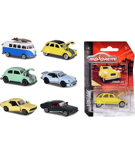 Simba Toys 212052010 Majorette Voiture Vintage - - Le cadeau parfait pour les fans de vintage et les collectionneurs assidus. - la Majorette Vintage Edition Les véhicules sous licence officielle de Majorette sont le cadeau parfait pour les petits et les grands fans de voitures et de collection. L'assortiment de 6 modèles contient des voitures jouets conçues avec un grand souci du détail. Mais il n'y a pas que pour les yeux que beaucoup est fait. Le plaisir de jouer est assuré par la roue libre et la suspension, ce qui permet de faire des courses passionnantes avec ces bolides. - L'assortiment comprend quelques-uns des modèles vintage les plus populaires du marché. Tous sont équipés de phares avant transparents et d'un intérieur détaillé. Les pièces ouvrables incitent également à jouer. - Non seulement elles ont de l'allure, mais elles permettent en outre d'entraîner la motricité de vos enfants de manière ludique. - Vous recevrez un véhicule au hasard dans l'assortiment ainsi qu'une carte à collectionner qui vous en dira plus - une belle surprise ! - Majorette mise sur des véhicules réalistes avec des licences originales de l'industrie automobile ainsi que sur des modèles en métal de haute qualité pour que vous et vos enfants en profitiez longtemps. - - Véhicules en métal fondu. - Machines de 7,5 cm de long. - Échelle : 1,64- Existe en différentes couleurs ou modèles - Le prix s'applique à un seul article - Pas de choix possible, expédition en fonction des stocks disponibles - À partir de : 3 ans ...