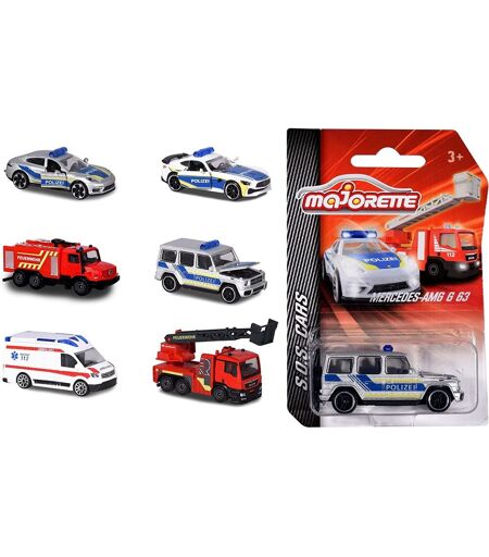 Simba Toys 212057181 Majorette Véhicule d'intervention SOS - - Parfait pour les collectionneurs : pour chaque utilisation, le bon véhicule avec les véhicules d'intervention SOS de Majorette. Les véhicules SOS sous licence officielle de Majorette sont le cadeau parfait pour les petits et grands fans de voitures et de collectionneurs. - Cet assortiment de 6 modèles comprend des voitures de jouets conçues avec une grande attention aux détails. Mais beaucoup de choses sont faites pour les yeux. La roue libre et les suspensions assurent le plaisir de jeu ? ainsi les courses passionnantes avec les bolides flottants sont possibles. - La gamme comprend les principales voitures de pompiers et de police, toutes équipées de feux avant transparents et d'un intérieur détaillé. Pour jouer, les pièces en partie mobiles. Cela ne fait pas seulement de manière ordonnée, mais entraîne en même temps la motricité de vos enfants de manière ludique. Lors de l'achat, vous recevrez un véhicule SOS aléatoire de la gamme ? une belle surprise. - Majorette s'appuie sur des véhicules réalistes avec des licences d'origine de l'industrie automobile ainsi que sur des finitions métalliques de qualité supérieure, afin que vous et vos enfants en ayez quelque chose pour longtemps. - - Véhicules en métal fondu. - Machines de 7,5 cm de long. - Échelle : 1,64- Existe en différentes couleurs ou modèles - Le prix s'applique à un seul article - Pas de choix possible, expédition en fonction des stocks disponibles - À partir de : 3 ans ...