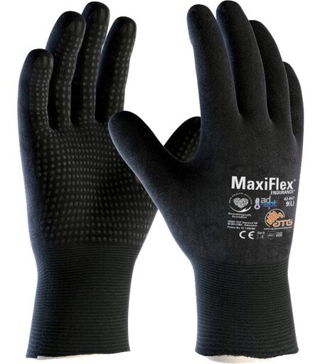 Ces gants de travail MAXIFLEX ENDURANCE sont dotés d'un support tricoté fin en Nylon/Lycra avec traitement de régulation thermique AD-APT® et d'un picot nitrile sur les paumes pour une meilleure préhension. Ils sont conçus avec la technologie Airtech® afin d'assurer une respirabilité à 360°. De plus, avec leurs formes, ces gants réduisent la fatigue tout en augmentant le confort. Caractéristiques techniques :Type de gant : manutentionType de montage : tricotSupport : Nylon/Lycra® avec traitement de régulation thermique AD-APT®Enduction complète en micro mousse de nitrile microporeuxÉpaisseur de la paume : 1,1 mm Utilisations :Manutention lourdeMaintenance et travaux diversAssemblage primaire, secondaire et final Lavable. Compatible écrans tactiles ...