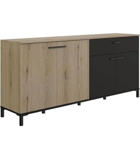 Enfilade 4 Portes 1 Tiroir Effet Bois Chêne Marron Et Noir