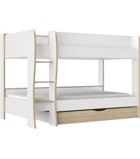 Lits Superposés - Tiroir - Roomy - Blanc / Chêne Naturel - Gami