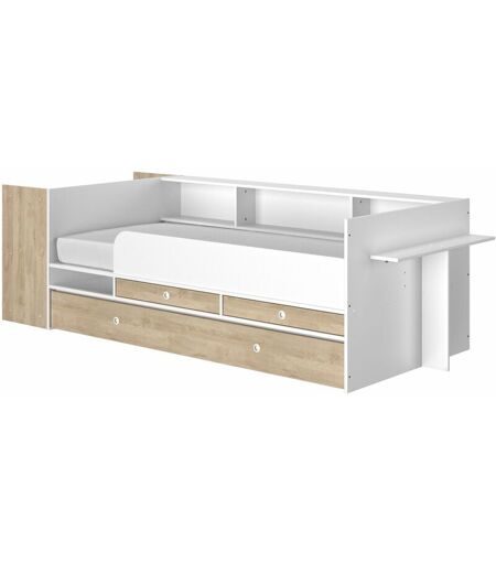 Le Lit évolutif EWEN a été conçu pour accompagner votre enfant dès l'âge de 3 ans, et évoluer en longueur de couchage en même temps que votre enfant grandit. Dans un espace restreint, il cumule de multiples rangements, des étagères, des tiroirs, un grand tiroir pouvant recevoir un matelas d'appoint, et un bureau. Ce lit est idéal pour les petites chambres car il regroupe, en 1 seul meuble, tous les besoins d'un jeune enfant. Ses couleurs neutres et naturelles, lui permettront de s'intégrer dans un grand nombre d'intérieurs. Conçu dans une démarche d'éco conception poussée, et respectant les normes enfants les plus strictes, le lit EWEN sera l'espace de vie idéal de votre enfant. ...