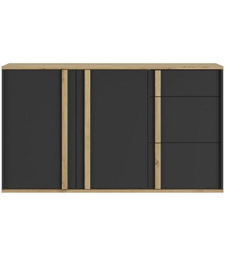 Le buffet 2 portes 3 tiroirs de la collection RAFAEL de la marque GAMI est un meuble de rangement pratique et élégant. Fabriqué en France, il est conçu avec des matériaux de qualité pour une durabilité optimale. Avec une hauteur de 91.5 cm, ce buffet offre un grand volume de rangement pour vos affaires. Les dessus et dessous en épaisseur 22 mm garantissent une solidité à toute épreuve.L'ouverture par poignées en mdf enrobé toute hauteur est pratique et facile à utiliser. Les 3 grands tiroirs de rangement vous permettent de ranger vos affaires en toute sécurité. Le bi ton noir et chêne pour un style résolument actuel apporte une touche de modernité à votre intérieur.Vous avez également la possibilité d'acheter en option une étagère murale de même longueur (L160) pour compléter votre ensemble de rangement. Avec une grande tablette, vous pouvez y ranger vos livres, vos objets de décoration ou vos bibelots préférés.Le buffet 2 portes 3 tiroirs de la collection RAFAEL de la marque GAMI est ...