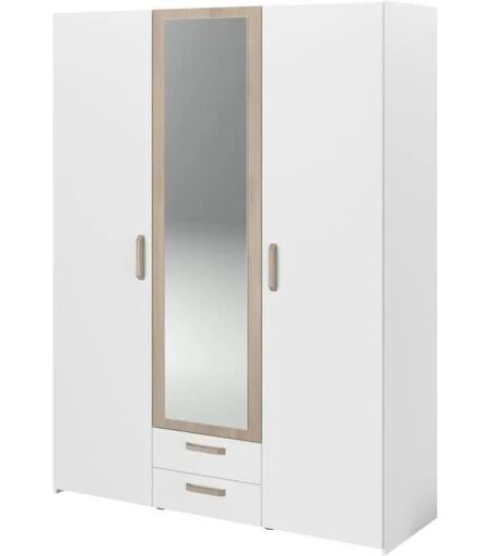 Parisot Armoire Dream 3 Portes - Panneau De Particules - Miroir - Décor Blanc - L150 X H200 X P52 Cm