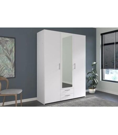 Parisot Armoire Varia - Décor Blanc - 3 Portes + 2 Tiroirs + Miroir - L 150 X H 200 X 51 Cm