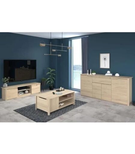 Ensemble Table basse avec coffre, Meuble Tv et Buffet - BETTY - Panneau de particules - Décor Chene - PARISOT ...