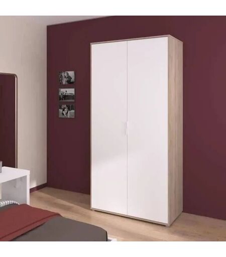 Parisot Armoire De Chambre - Aalborg - Blanc / Chêne - 2 Portes - 100 X 50,2 X 204,3 Cm
