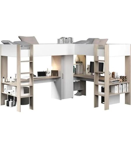 Parisot Lit Mezzanine Double Effet Bois Clair Et Blanc