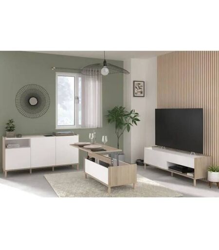 Ensemble Meuble De Salon - Meuble Tv, Table Basse, Buffet Bas - Morphos - Décor Blanc / Chêne - Parisot