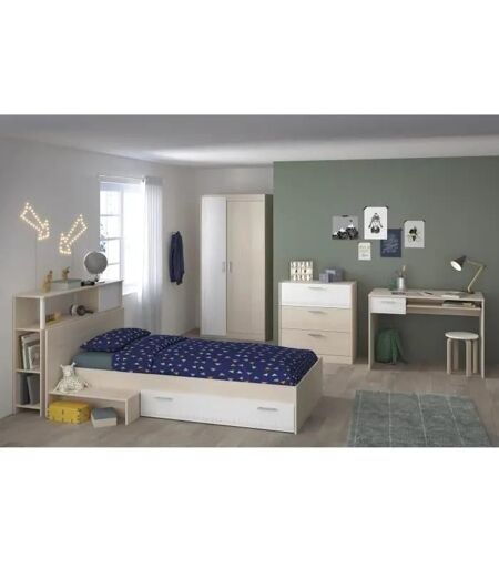 Parisot Charlemagne Chambre Enfant Complete - Tete De Lit Lit Commode Armoire Bureau - Contemporain - Décor Acacia Clair Et Blanc