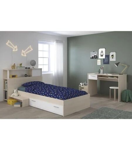 Parisot Charlemagne Chambre Enfant Complete Tete De Lit Lit Bureau - Style Contemporain - Décor Acacia Clair Et Blanc