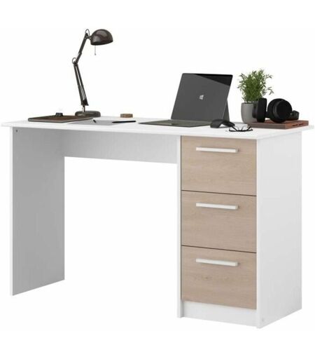 Parisot - Bureau essentiel 3 tiroirs - Décor chene et blanc - l 121,2 x p 55 x h 74,5 cm - Fabriqué en France