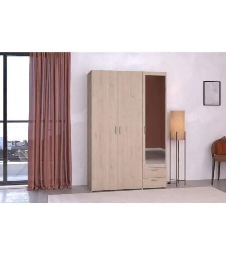 Parisot Armoire Varia - Décor Chene Et Blanc - 3 Portes - 2 Tiroirs - Porte Droite Avec Miroir - 120,3 X 185 X 51,7