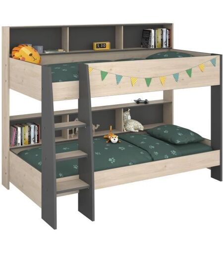 Parisot Lits Superposés Enfant - Décor Chene Jackson Et Gris Ombre - Sommiers Inclus - 2 X 90 X 200 Cm - Jim