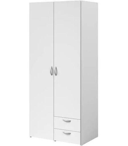 Armoire Varia - Décor Blanc - 2 Portes Battantes + 2 Tiroirs - L 81 Cm X H 185 X P 51 Cm - Parisot