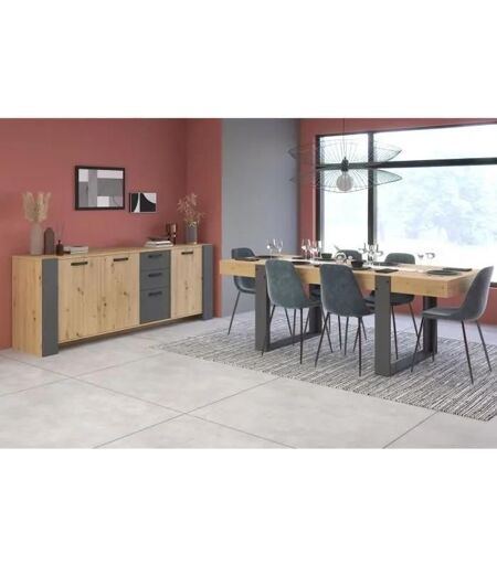 Ensemble Enfilade + Table Loft - Parisot - Chene Artisan Et Gris - 3 Portes - 8 Personnes