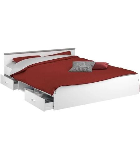ZODIAC Lit Femme l 160 x L 200 cm - Panneaux de particules décor blanc mat - Style et design contemporain - 2 tiroirs et 1 niche - Montage des tiroirs reversibles - Livré avec 1 support central - Livré sans sommier ni literie - Fabrication française - Dimensions totales : l 203 x L 166 x H 59 cm. ...