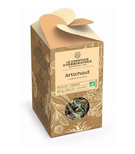 ARTICHAUT BIO FEUILLE FRANCE 40G Cynara scolymus Nom latin : Cynara scolymus; Famille des Asteraceae : du grec « kynara » (cardon). L'artichaut est cultivé depuis l'Antiquité mais ne réapparait comme légume qu'au Moyen Age en Europe.... ...