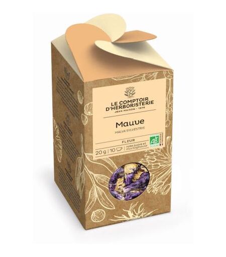MAUVE BIO FLEUR 20G Malva sylvestris Nom latin : Malva sylvestris ; Famille des Malvaceae Pythagore nous enseigne que la mauve modère les passions et permet d’atteindre la sagesse. La mauve fait partie de la fameuse « tisane pectorale des... ...