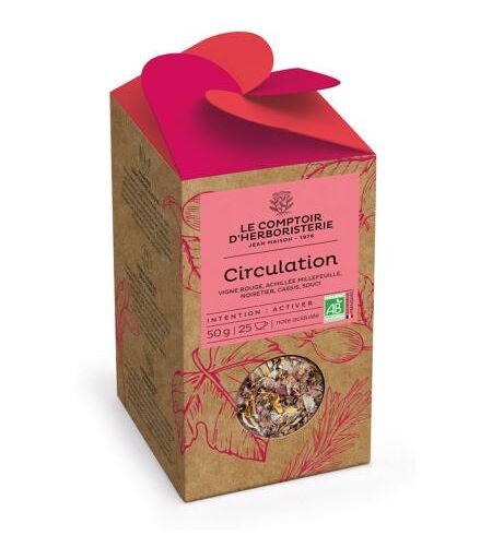 LE COMPTOIR D'HERBORISTERIE TISANE CIRCULATION BIO 50G Vigne rouge, Millefeuille, Noisetier, Cassis, Souci.