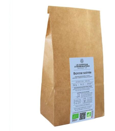 LE COMPTOIR D'HERBORISTERIE TISANE BONNE SOIREE BIO Maxi Paquet 150G Oranger, Mauve, Verveine, Hibiscus, Myrtille, Bleuet.