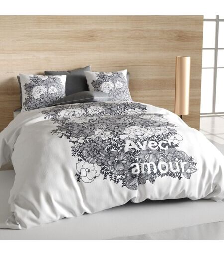 Atelier Du Coton - Housse de couette 240x220 Avec Amour + 2 taies coton bio 47 fils