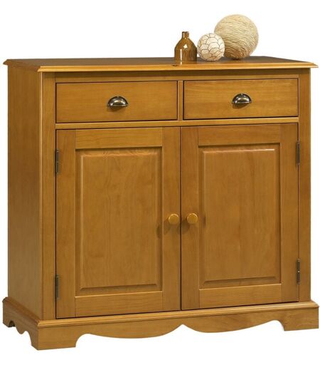 BEAUX MEUBLES PAS CHERS Buffet Pin Miel 2 Portes 2 Tiroirs 2 Niches Style Anglais L 101 H 90 P 42 cm