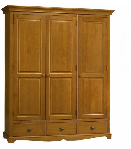 Beaux Meubles Pas Chers - Armoire Penderie Pin Miel 3 Portes 3 Tiroirs l 164.3 h 194.8 p 54.5 cm - orange