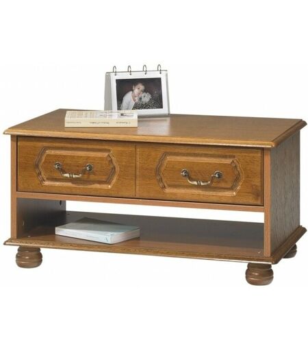 Beaux Meubles Pas Chers - Table Basse Chêne Rustique Rectangle 2 Tiroirs 1 Niche l 82.4 h 42 p 46.5 cm - marron