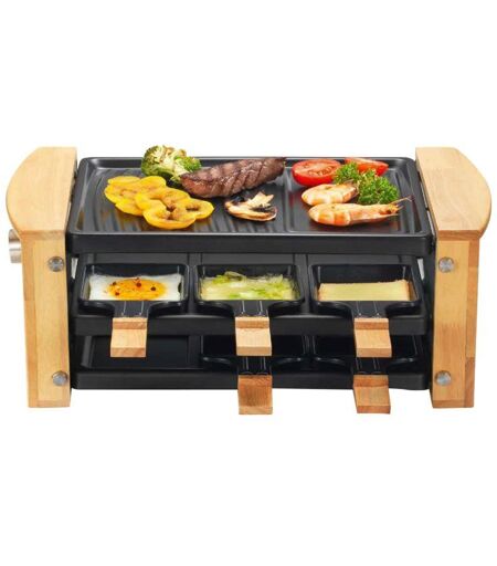 Un appareil 2 en 1 parfait pour vos repas en famille ou entre amis ! Cet appareil convivial vous permettra de griller vos aliments tout en laissant fondre tranquillement votre fromage ! Caractéristiques : Puissance : 900 W Livré avec 6 poêlons antiadhésifs et 6 spatules Thermostat réglable pour adapter votre température de cuisson Plaque grill antiadhésive Range-poêlons Corps en bois véritable ainsi que les manches des poêlons Dimensions : 16 x 39,6 x 22 cm Poids : 2.7 kg ...