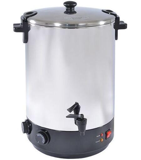 Stérilisateur de Bocaux Kitchen Chef ZJ280TD Inox Le stérilisateur ZJ-280TD de Kitchen Chef est un appareil semi-professionnel, parfait pour stériliser vos bocaux, préparer du pot-au-feu, des soupes en grande quantité, ou encore du vin chaud. Caractéristiques Principales Ce stérilisateur est doté d'une cuve en inox et d'un couvercle en inox avec un système de verrouillage. De plus, il est équipé d'un robinet qui permet de vider facilement la cuve ou de servir du vin chaud à la température idéale. Puissance : 2500 W Capacité de la cuve : 28 L Peut contenir jusqu'à 15 bocaux de 0,5L chacun ou 10 bocaux de 1L chacun Cuve en acier inoxydable 304 Dimensions intérieures de la cuve : Ø 31 x H 37.5 cm Robinet de vidange Minuteur 120 minutes Fonction maintien de la température Couvercle inox avec système de verrouillage Thermostat de 0 à 100°C avec témoin de fonctionnement Poignées thermo-isolantes Protection contre la surchauffe avec un thermofusible réarmable Interrupteur général Voyant de mise en chauffe et voyant de maintien en température Dimensions (HxLxP) : 56.5 x 40 x 38 cm Poids : 3.85 kg Couleur : Inox/noir (base inox peinte en noir) ...