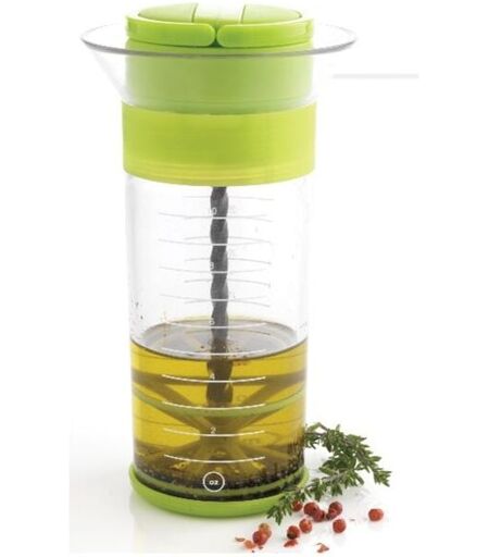 Toupie des sauces - Quick Wisk - Réalisez vinaigrettes, mayonnaises, sauces et crèmes fouettées en un tour de main et sans effort ! - Cette toupie des sauces s'inspire s'inspire des toupies d'enfant qu'on actionne en pressant un piston - Facile à utiliser : dévissez le couvercle, versez vos ingrédients, descendez et montez la poignée et voilà ! - Vous pouvez ajouter vos ingrédients au fur et à mesure sans interruption - Base en silicone antidérapante servant de couvercle pour conserver vos préparations - Contenance 300 ml - Bec verseur 360° - Bande et base en silicone antidérapant - Double graduation en ml et oz - Nettoyage facile : passe au lave-vaisselle. ...