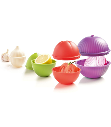 Pour bien conserver vos fruits et légumes entamés ! Boîtes conçues en polypropylène : résistant et solide 4 rangements de formes et tailles différentes Boite adaptée au contact alimentaire Compatible au lave-vaisselle Garantie 2 ans ...