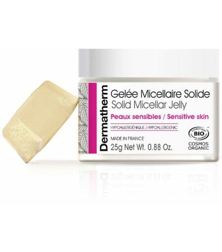 3Suisses : Avec sa formulation 100% naturelle, bio et innovante, le Démaquillant en Gelée Micellaire Solide pour Peaux Sensibles Dermatherm débarrasse efficacement la peau des impuretés pour la rendre saine et fraiche. Le produit agit en douceur afin de préserver l?hydratation naturelle de l?épiderme. Il offre une sensation agréable de fraicheur et de douceur. Contenance : 25 grammes Utilisation quotidienne. Passez la gelée micellaire sous l?eau chaude pour l?humidifier. Humidifiez aussi votre peau. Appliquez le produit en réalisant des mouvements en cercles. Vous obtiendrez une couche lactée. Rincez bien. Enlevez l?excédent de produit avec un disque de coton démaquillant. Gardez la gelée micellaire au sec après utilisation. Marque: Dermatherm Genre: Homme ...