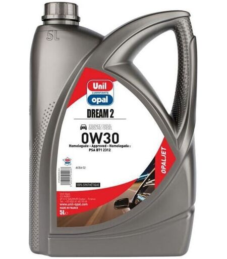 Catégorie : Synthétique Détails du produit : OPALJET DREAM 2 0W30 est une huile 100% synthèse dite « FUEL ECO » conçue pour répondre aux exigences les plus sévères des moteurs automobiles modernes, dans toutes les conditions de service. Le grade 0W30 protège votre moteur dès le démarrage par grand froid (-35°C) et permet une économie significative de carburant par rapport à l?utilisation d?un grade 15W40. Assure la protection des filtres à particules contre l?encrassement, grâce à ses très basses teneurs en soufre et cendres sulfatées. Possède des caractéristiques naturelles exceptionnelles : résistance au cisaillement etfaible volatilité. Sa formulation de pointe maintient la propreté de tous les organes de votre moteur en prévenant la formation de dépôts à hautes et basses températures, quel que soit le carburant utilisé. Homologation : PSA B71 2312 NIVEAUX DE PERFORMANCE : ACEA C2-16 Poids (kg) : 8,04 Marque : UNIL OPAL ...