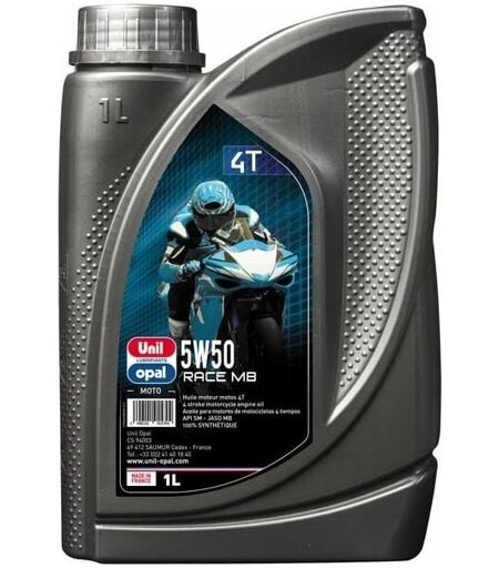 Catégorie : Synthétique Détails du produit : RACE MB 5W50 est une huile 100% synthétique aux performances exceptionnelles, tant par la très large plage de viscosités/températures couverte, que par la haute protection contre l?usure et la réduction des frottements internes. RACE MB 5W50 est tout particulièrement adaptée à la lubrification des motos exigeantes à moteur 4 temps, et particulièrement pour les motos de compétition. RACE MB 5W50 est le lubrifiant haute technologie des motards les plus exigeants. Convient pour tous les moteurs où le constructeur recommande ou autorise l?emploi d?une SAE 5W-50 API SJ, SL, SM ou SN. NIVEAUX DE PERFORMANCE : API SN JASO MB Poids (kg) : 8,04 Marque : UNIL OPAL ...