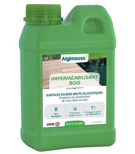SURFACES EN BOIS BRUTS OU EXOTIQUES.Empêche la pénétration de l?eau dans le bois.Toutes surfaces en bois : mobilier de jardin, palissades, caillebotis, menuiseries, volets...Empêche la pénétration de l'eau, protection longue durée, protège du gel et du vieillissement. CARACTERISTIQUESAvertissement : Dangereux. Respectez les précautions d'emploi. Fiche produit constructeur / fournisseur : https://static.findis.fr/data/articles/1233473/fiche-produit-2314.pdf Produit avec fiche de sécurité : oui ...