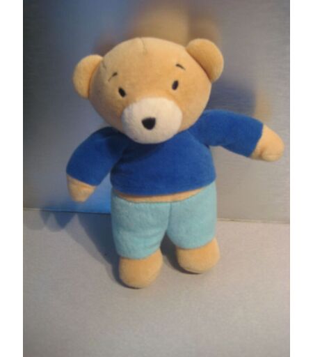 Doudou Peluche Ours Souriant Bleu Ciel Et Azur 17 Cm